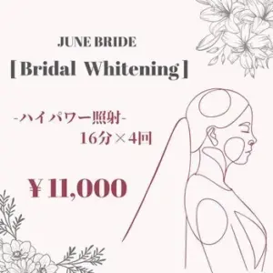 当店ではプレミアムコースより短期間で効果を感じられるブライダルコース 「ハイパワー 16分×4回照射」をご用意しております。 こちらは結婚式前のお客様に高い人気を誇っている当店自慢のメニューなんです。