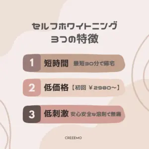 セルフホワイトニングには3つの特徴があることをご存知でしょうか。